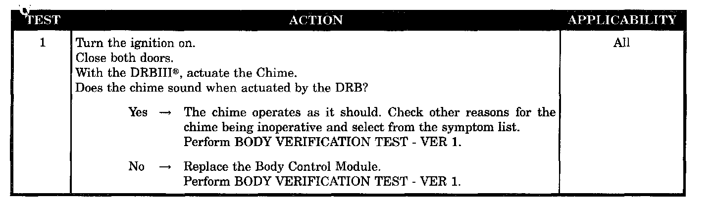 CHIME INOPERATIVE AT ALL TIMES