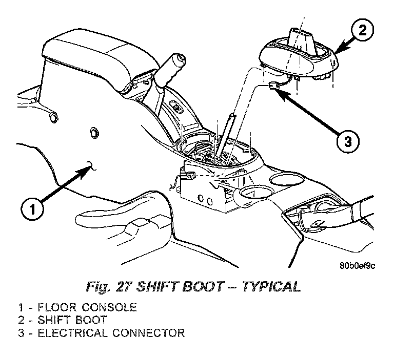 3. Disconnect the electrical connector, if equipped, and remove the shift boot (Fig. 26).