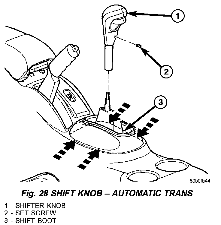 4. Install the shifter knob and tighten the set screw to 3 N.m (23 in.lbs.) (Fig. 28).