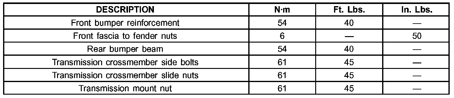 Torque Specifications: