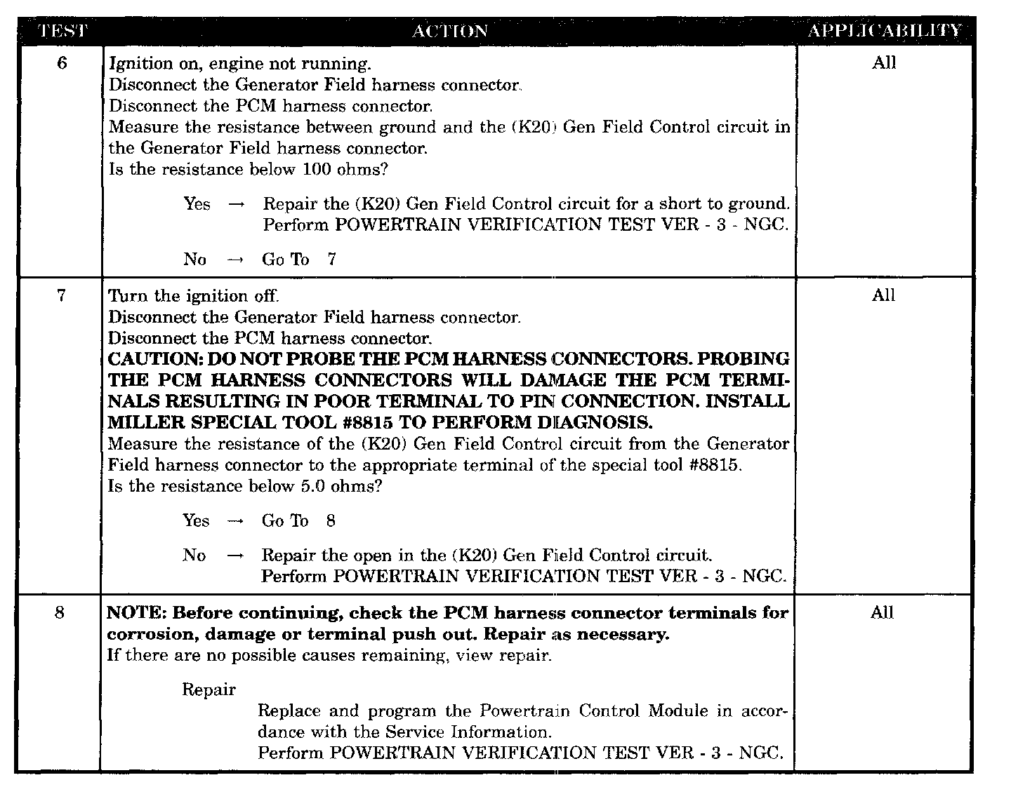 - (K20) GEN field control circuit shorted to ground