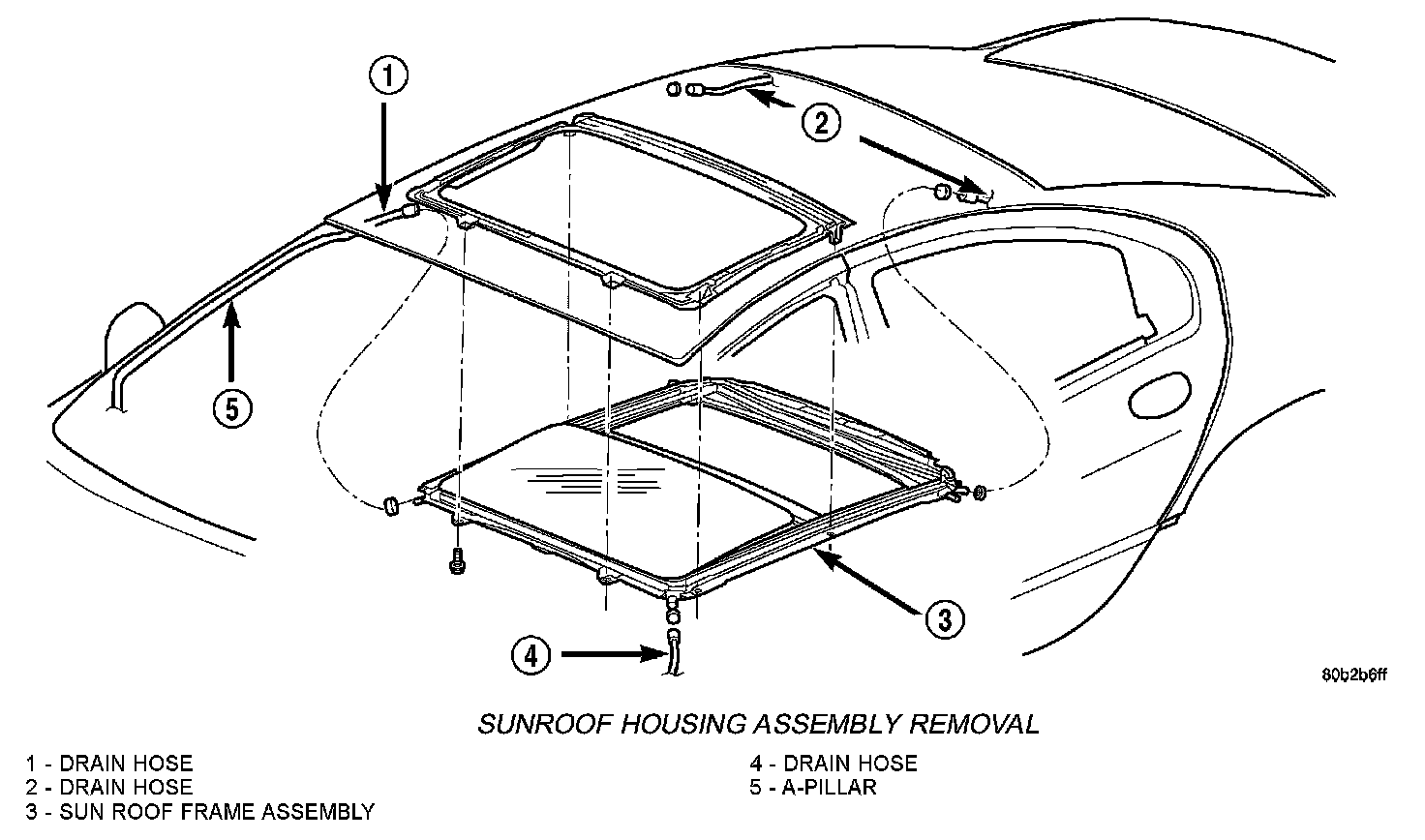 4. With the aid of a helper, remove fasteners attaching sunroof housing assembly to roof panel.