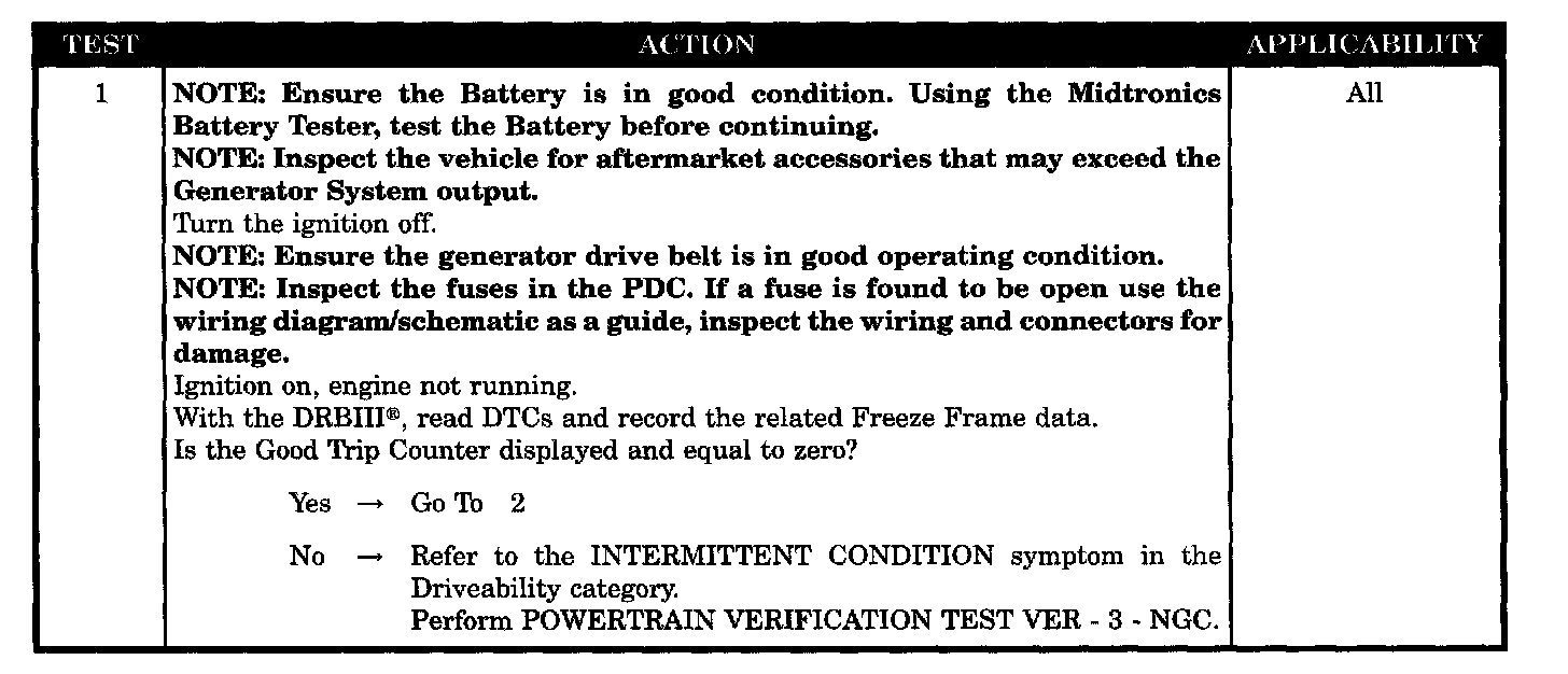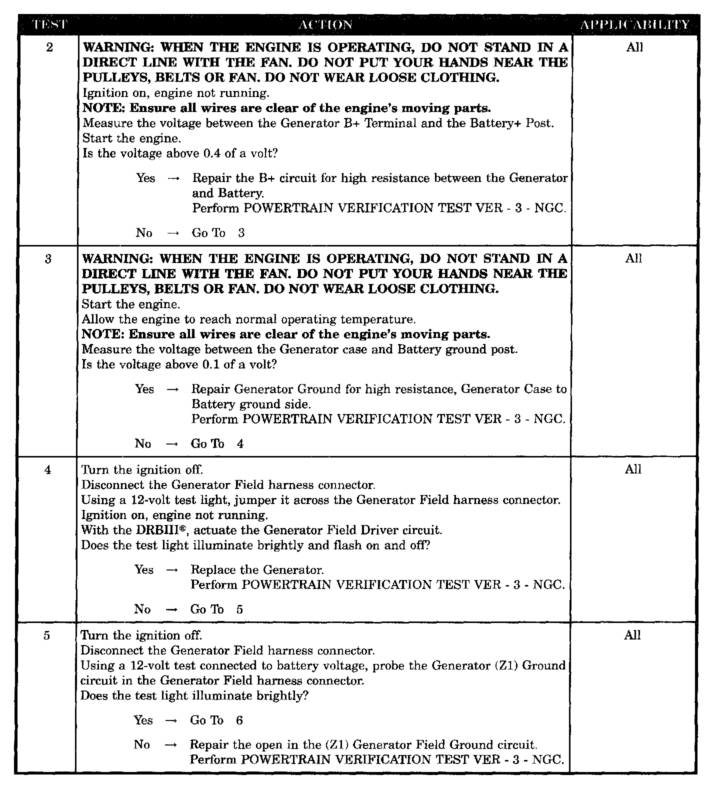 Battery voltage is less than 11.5 volts for 10 seconds. Battery Lamp will illuminate. The Battery Lamp will turn off if the battery voltage recovers to 12.04 volts or greater, due to reduction of load, increased RPM or an intermittent condition.