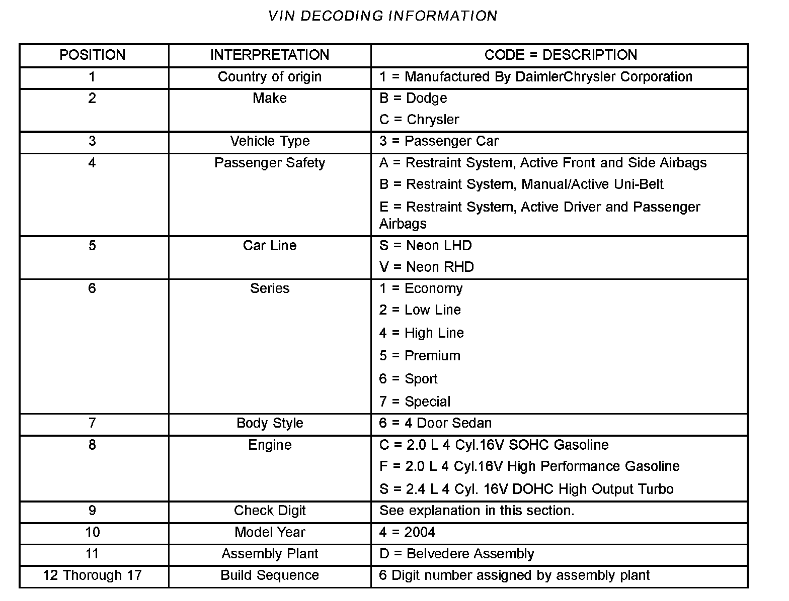 VIN Decoding Information: