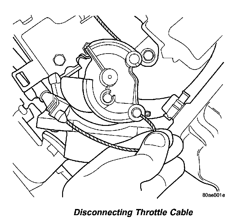 2. Working from the engine compartment, remove throttle cable from throttle body cam .