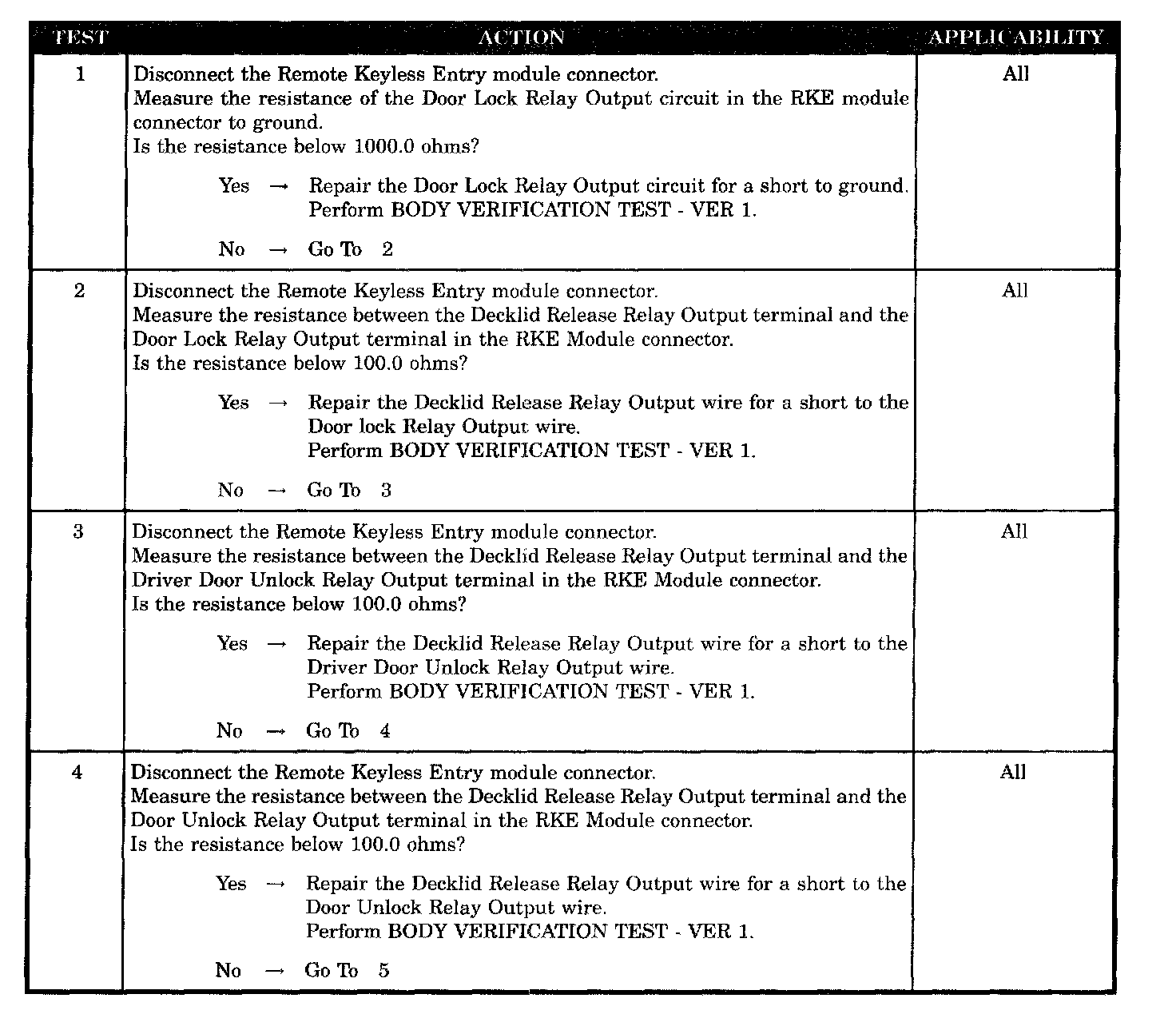 - Decklid release relay output short to door lock relay output