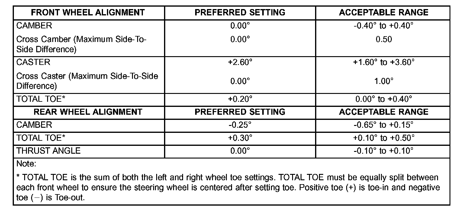 Wheel Alignment Specifications: