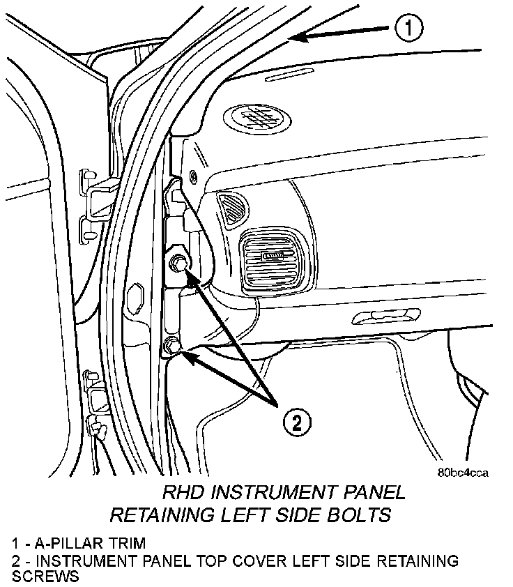 RHD Instrument Panel Retaining Left Side Bolts: