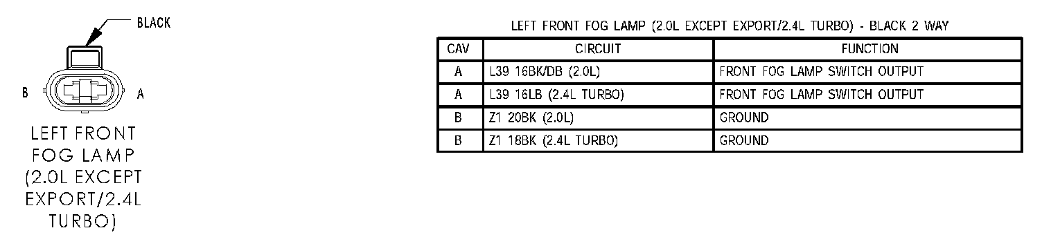 Left Front Fog Lamp (2.0L Except Export/2.4L Turbo):