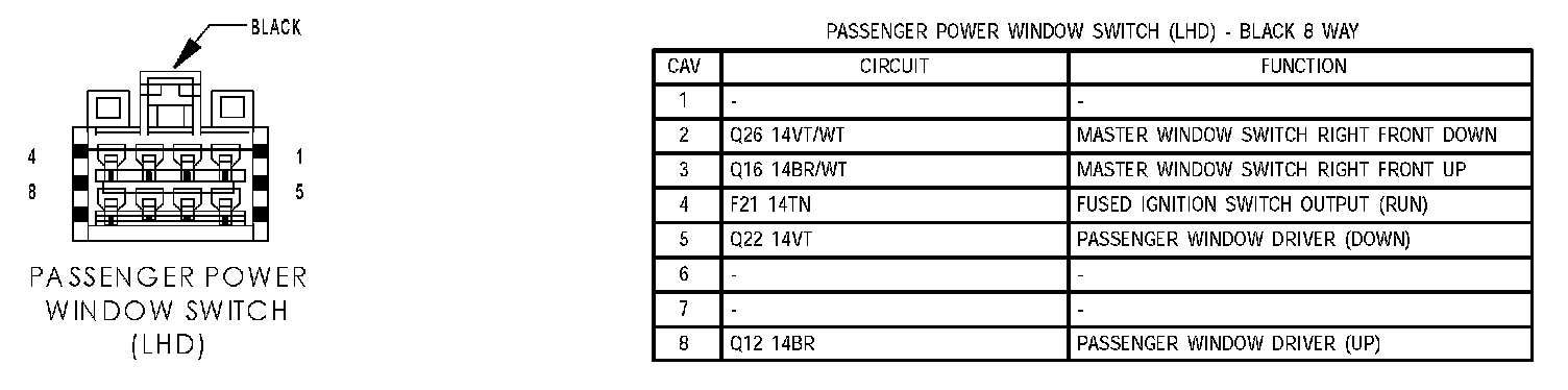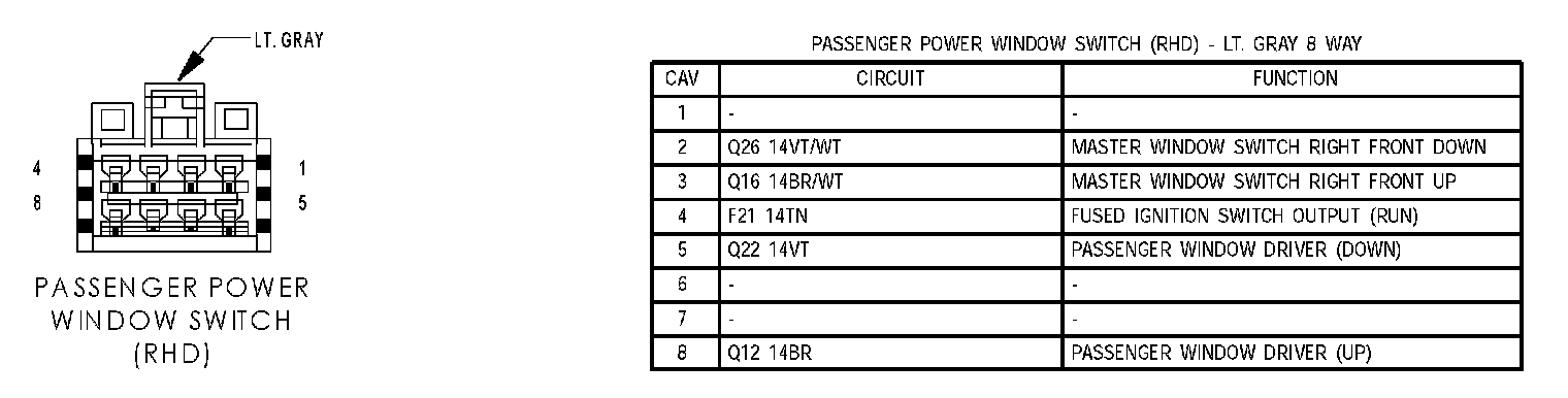 Passenger Power Window Switch (RHD):