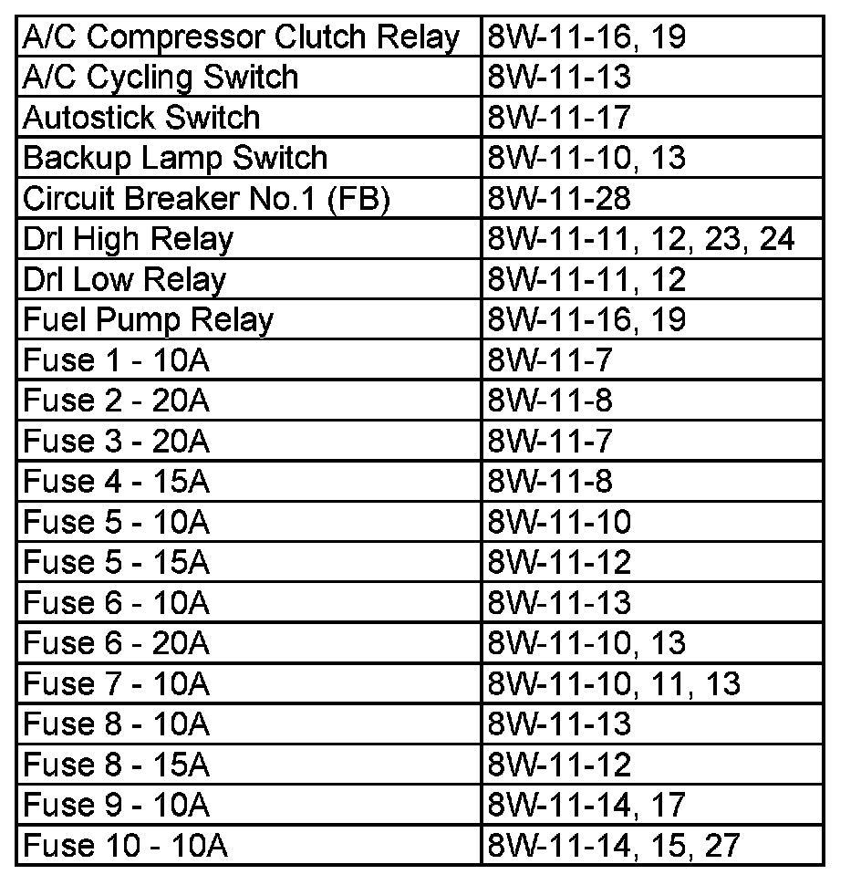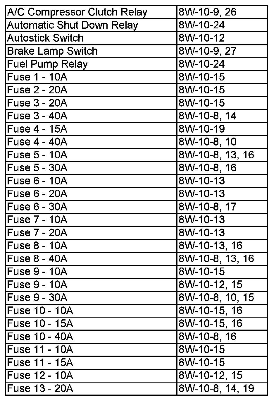 Fuse Block Circuits (A/C Compressor Clutch Relay - Fuse 10):