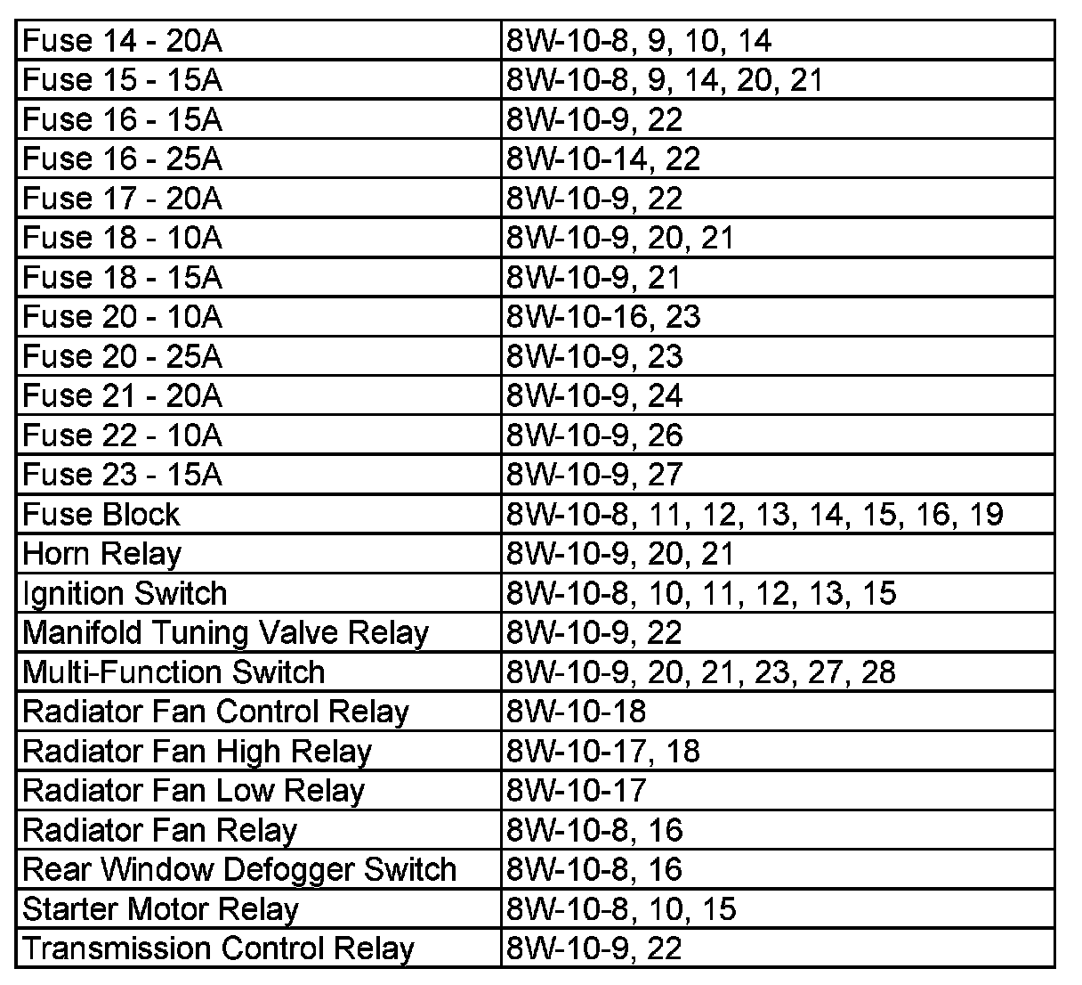 Power Distribution Circuits (Fuse 14 - Transmission Control Relay):