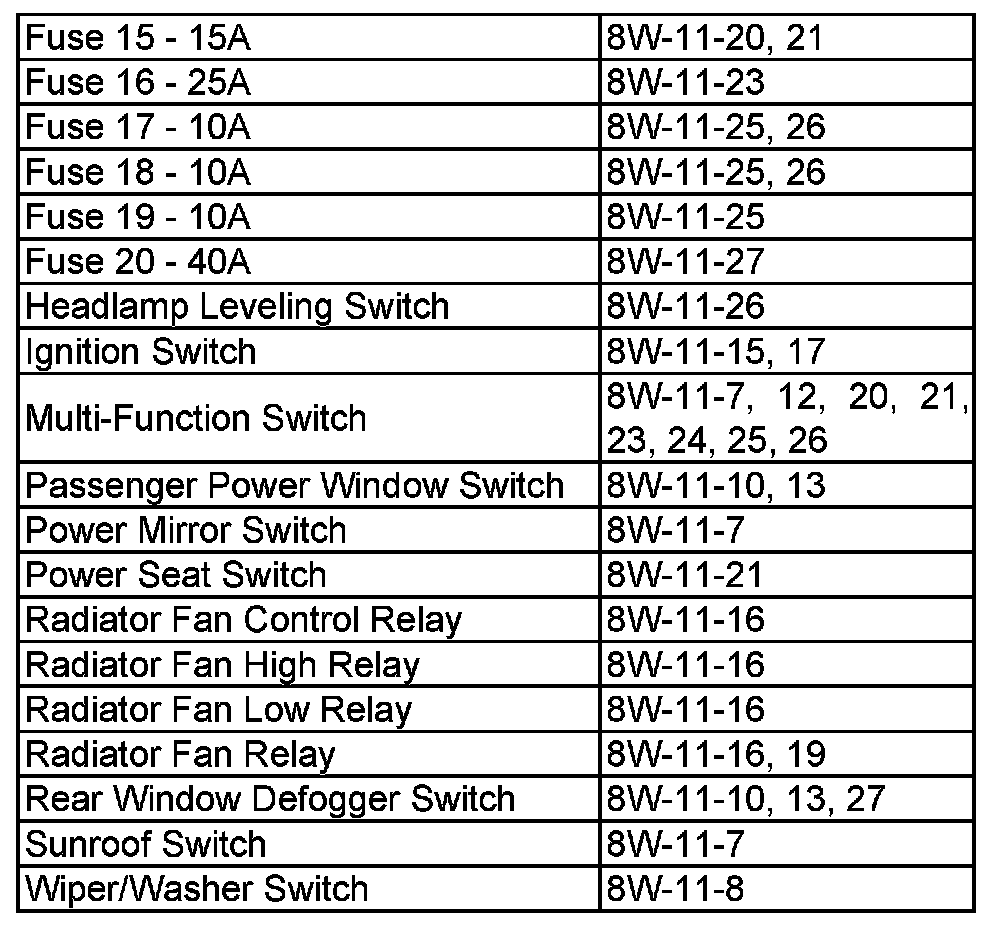 Fuse Block Circuits (Fuse 15 - Wiper/Washer Switch):