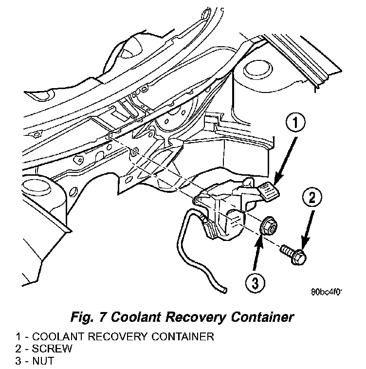 1. Install coolant recovery container and tighten fasteners to 4 Nm (35 inch lbs.) (Fig. 7).