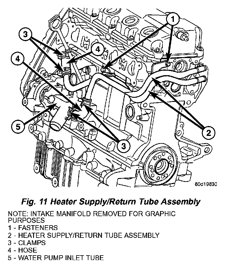 NOTE: It is not necessary to remove the intake manifold to replace heater supply/return tubes.
