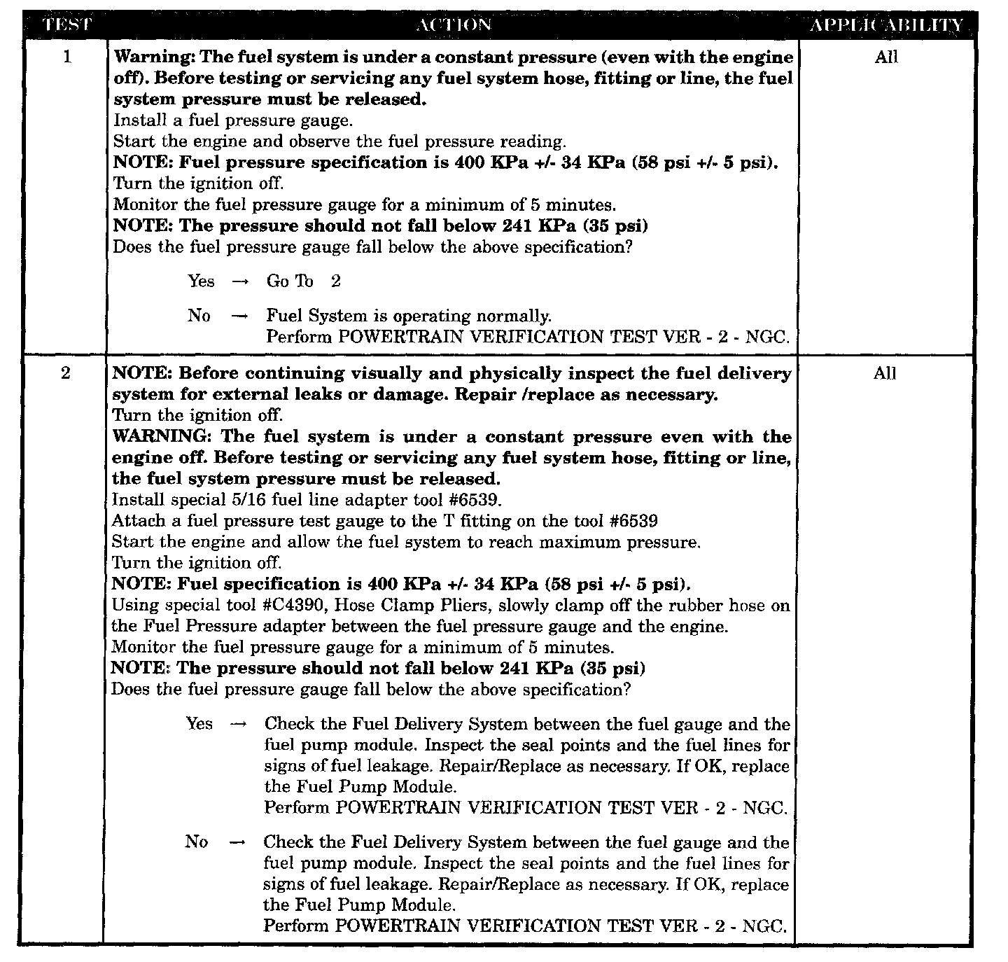 Fuel Pressure Leak Down Test
