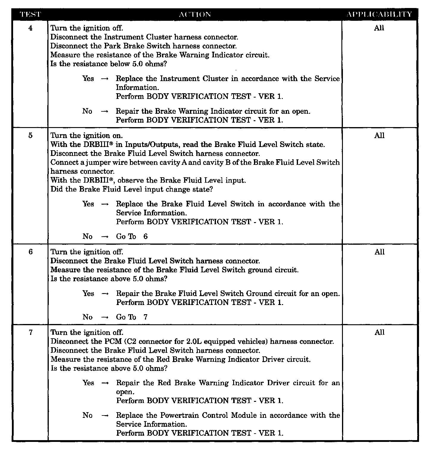- Brake fluid level switch ground circuit open