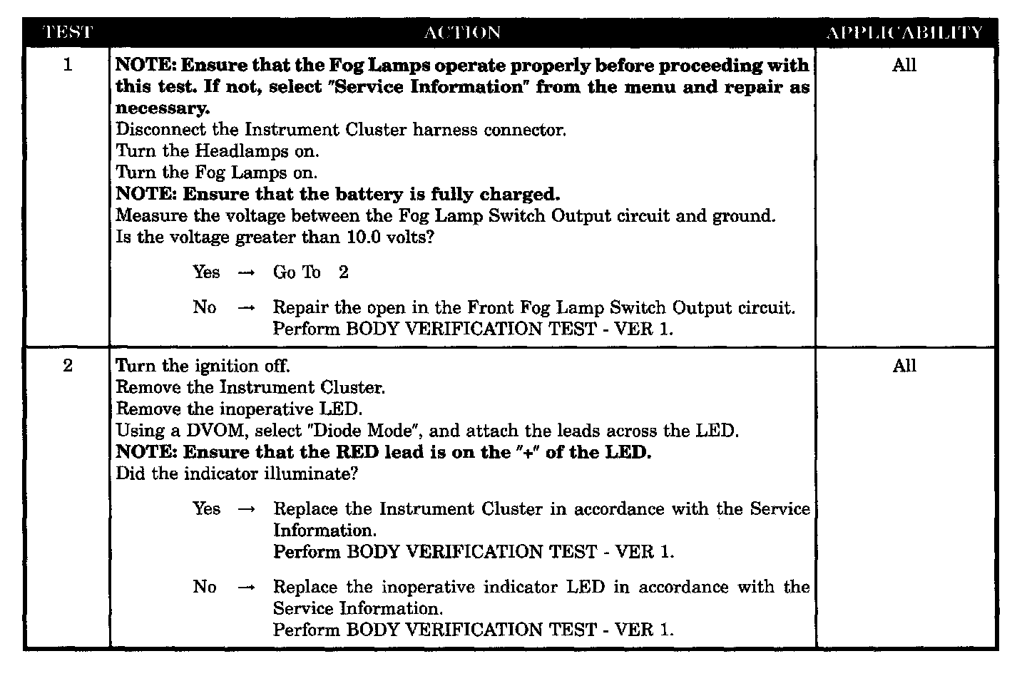 FRONT FOG LAMP INDICATOR INOPERATIVE