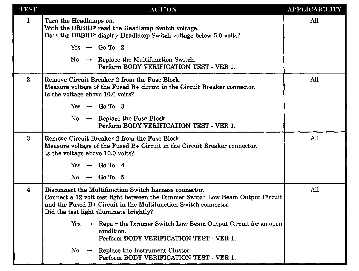 LOW BEAM HEADLAMPS WILL NOT TRN ON