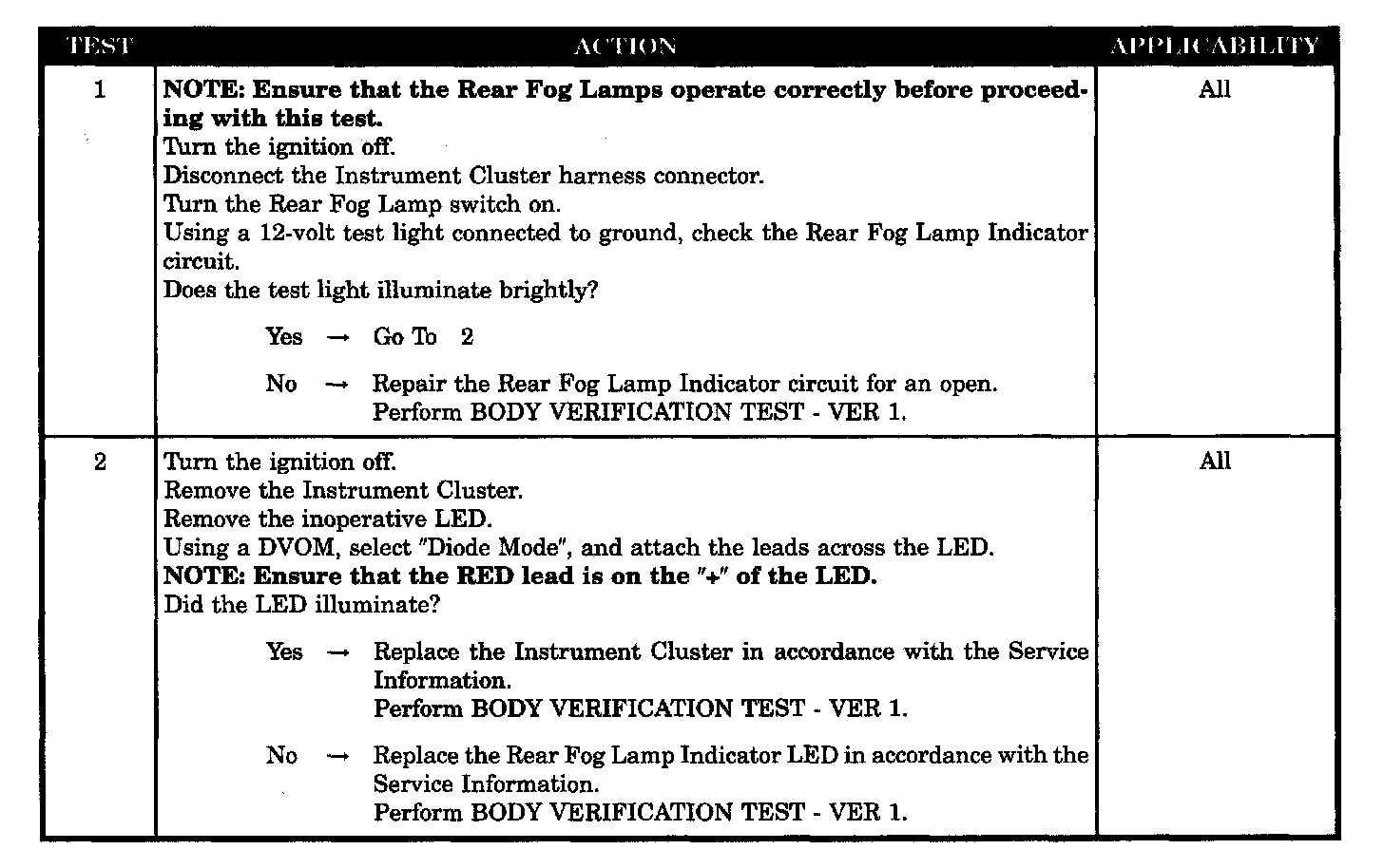 REAR FOG LAMP INDICATOR INOPERATIVE - BUX ONLY