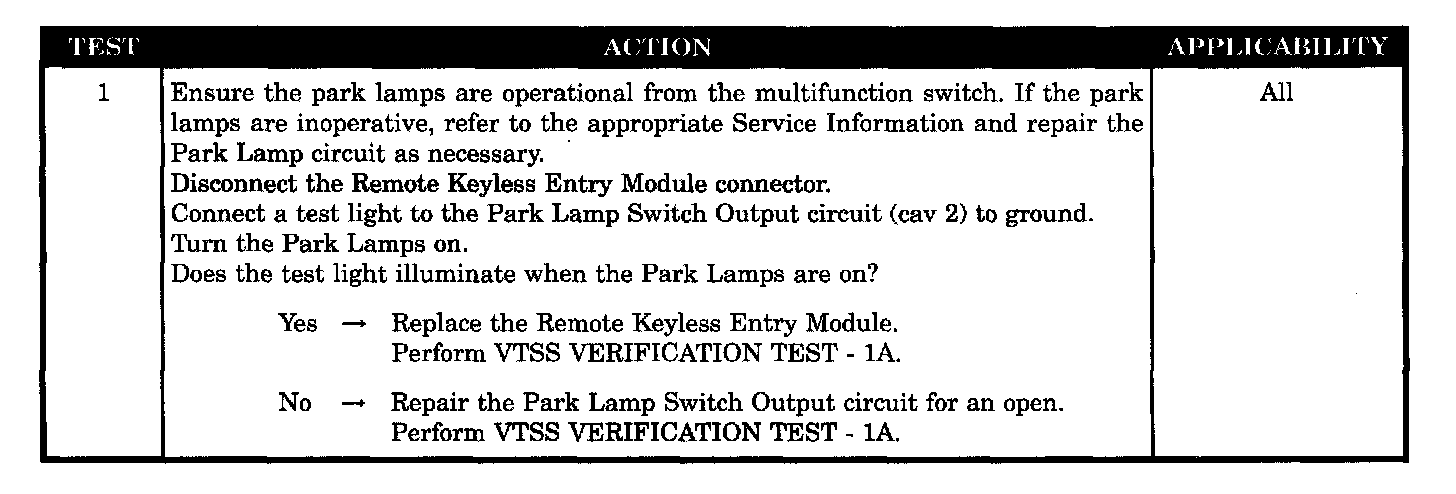 PARK LAMPS FAIL TO FLASH DURING ALARM