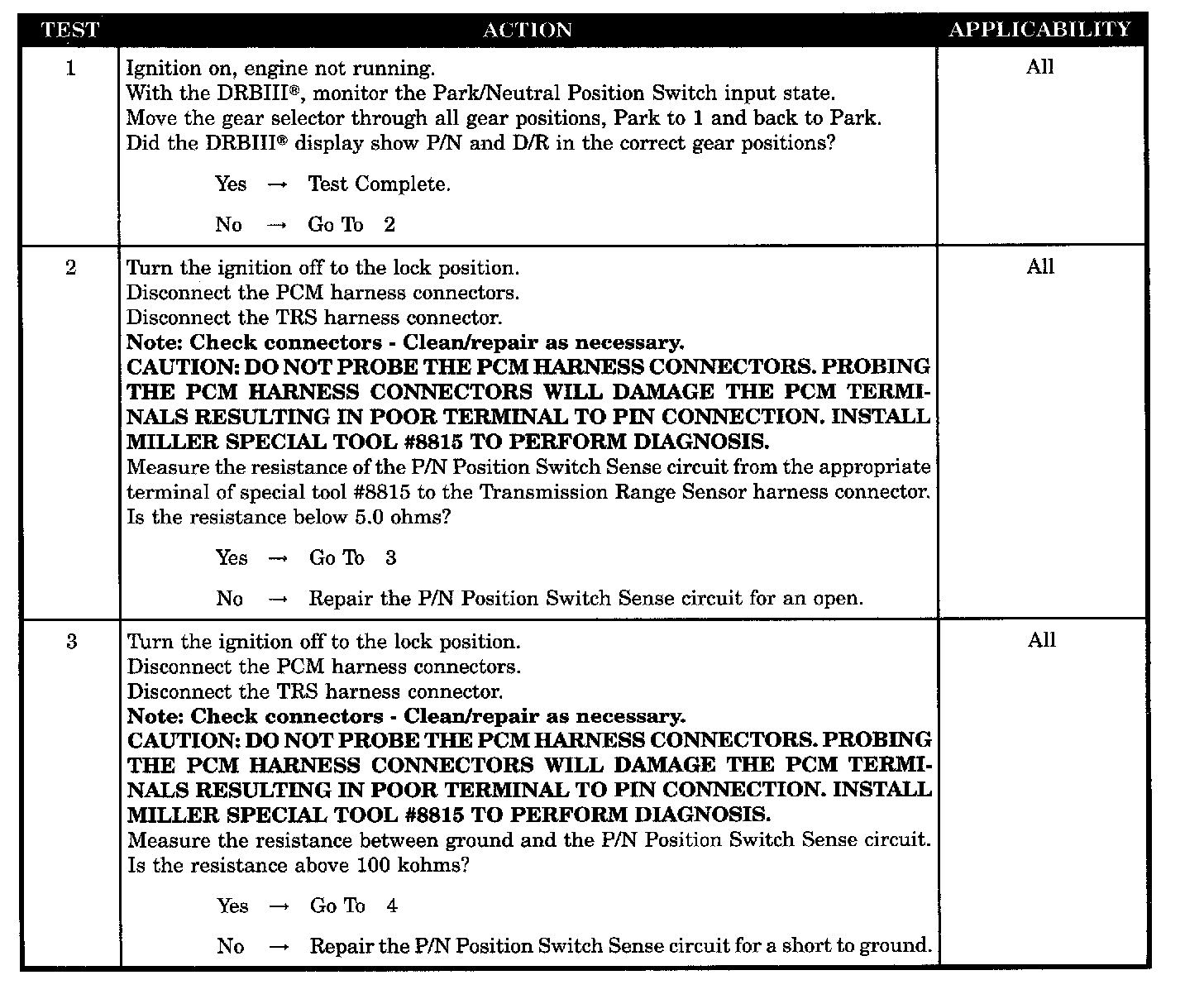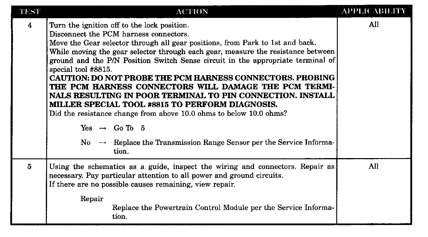 Symptom:CHECKING PARK/NEUTRAL SWITCH OPERATION