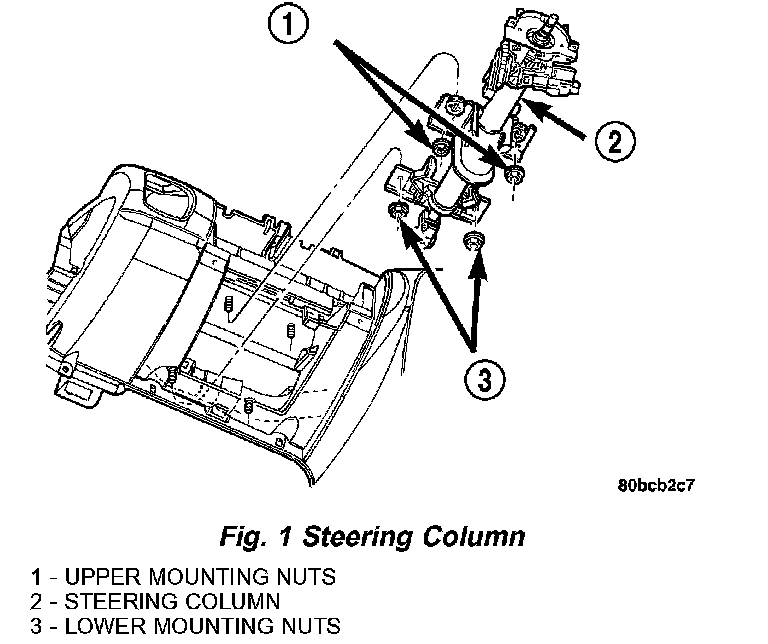 This vehicle is equipped with a tilt steering column. The steering column is designed to be serviced only as a complete assembly if an internal component is found to be defective (Fig. 1). The shaft, bearings and upper coupling are all serviced with the column.