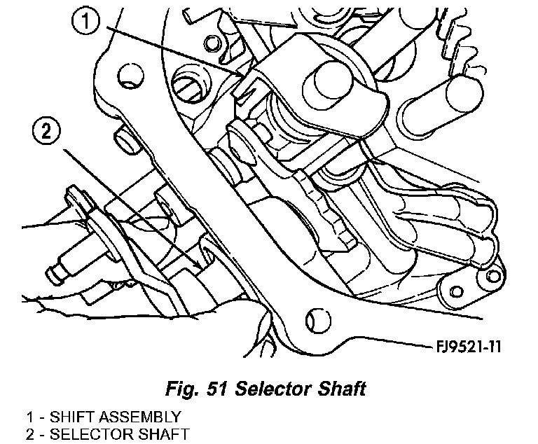 13. Turn selector shaft into slot on blocker assembly (Fig. 51).