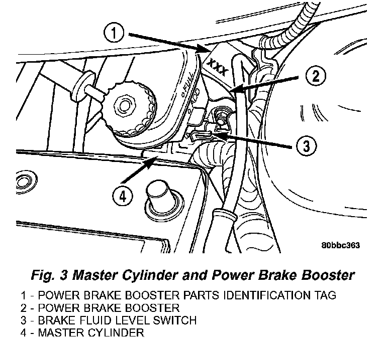 1. Remove the vehicle wiring harness connector from brake fluid level switch in master cylinder brake fluid reservoir (Fig. 3).