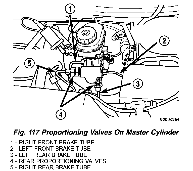 2. Disconnect the brake tube from the proportioning valve requiring removal (Fig. 117).