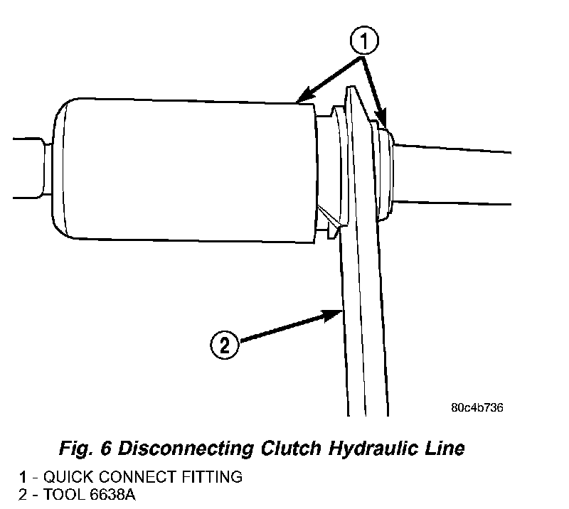 20. Using Special Tool 6638A, disconnect clutch hydraulic line (Fig. 5) and (Fig. 6).
