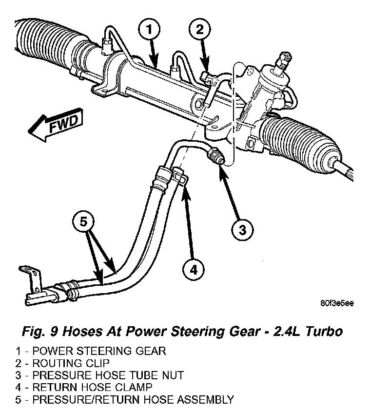 12. Connect both power steering hoses to steering gear (Fig. 9).