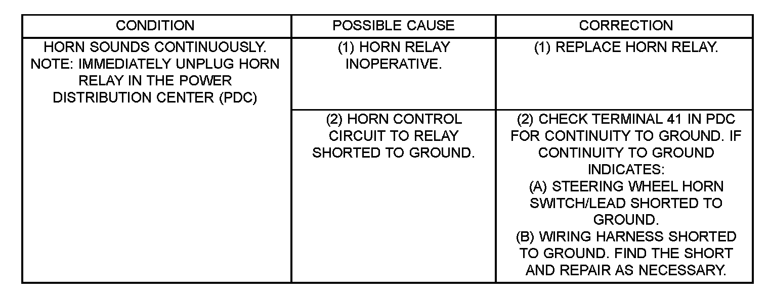 CAUTION: Continuous sounding of horn will cause horn to fail.