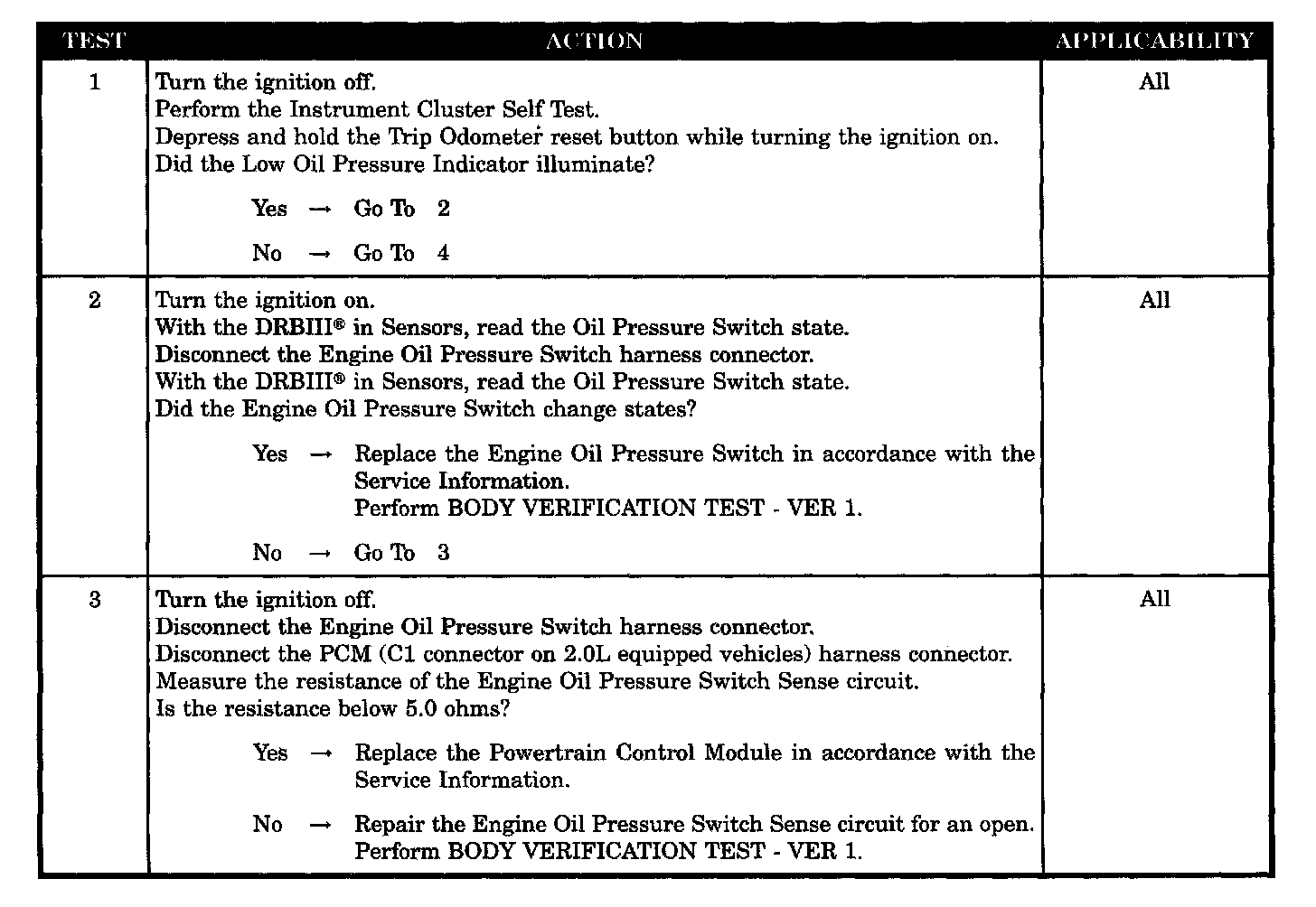 LOW OIL PRESSURE INDICATOR INOPERATIVE