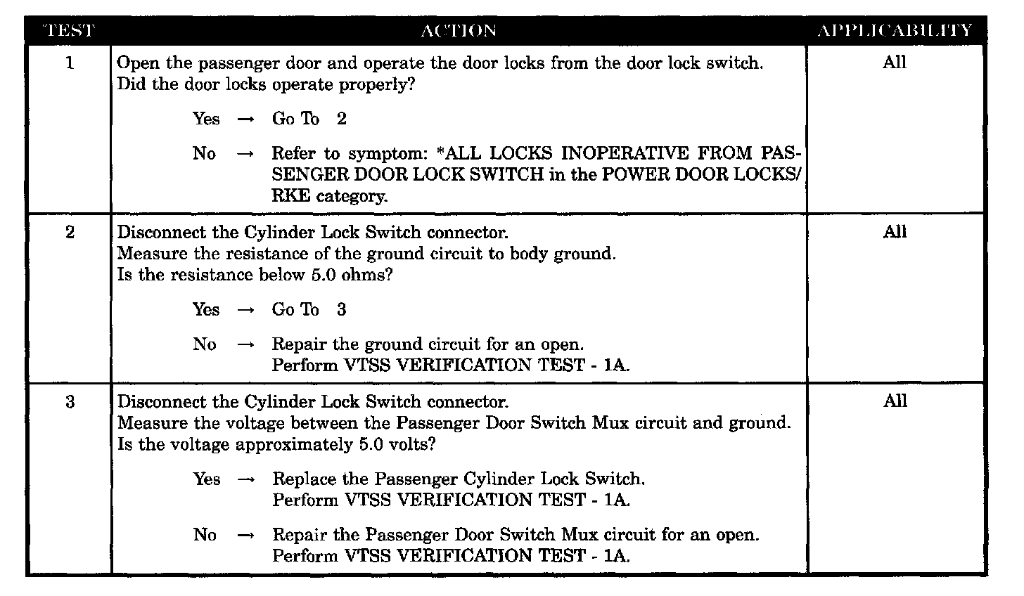 VTSS FAILS ARM FROM PASSENGER DOOR CYLINDER LOCK SWITCH (EXPORT ONLY)