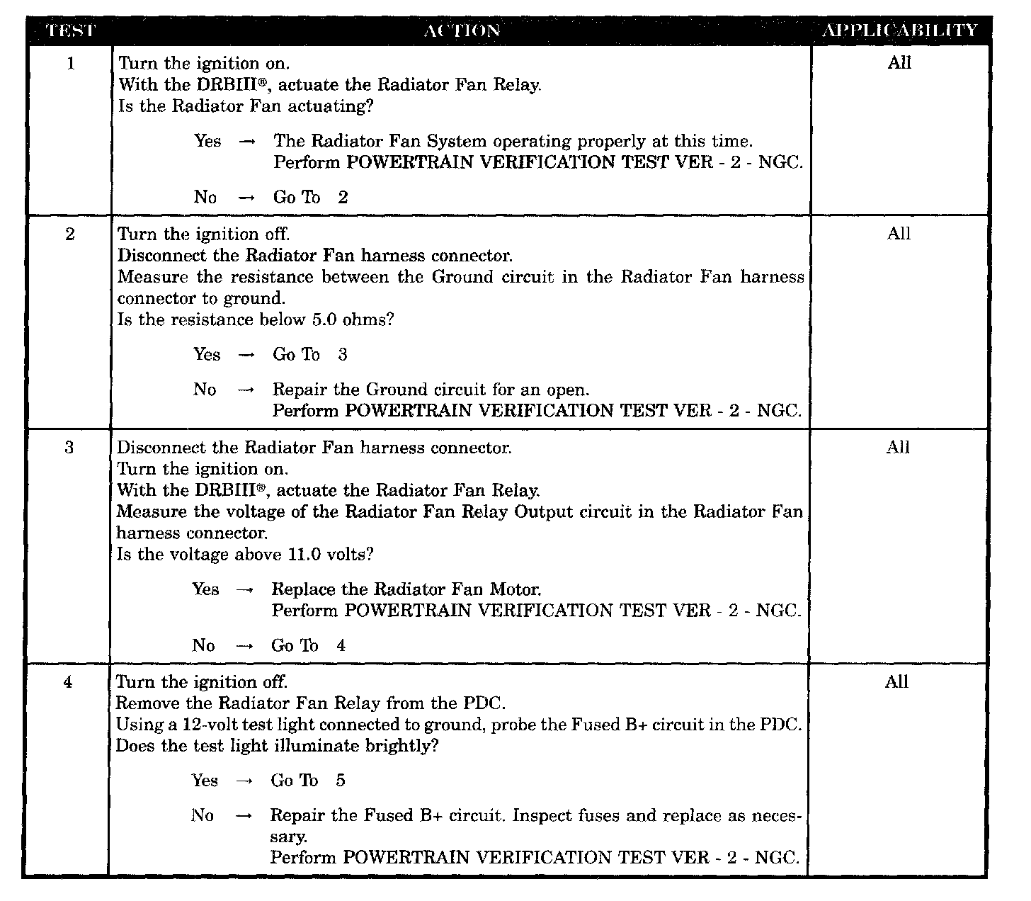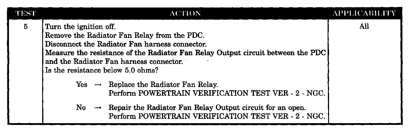 CHECKING RADIATOR FAN RELAY OUTPUT
