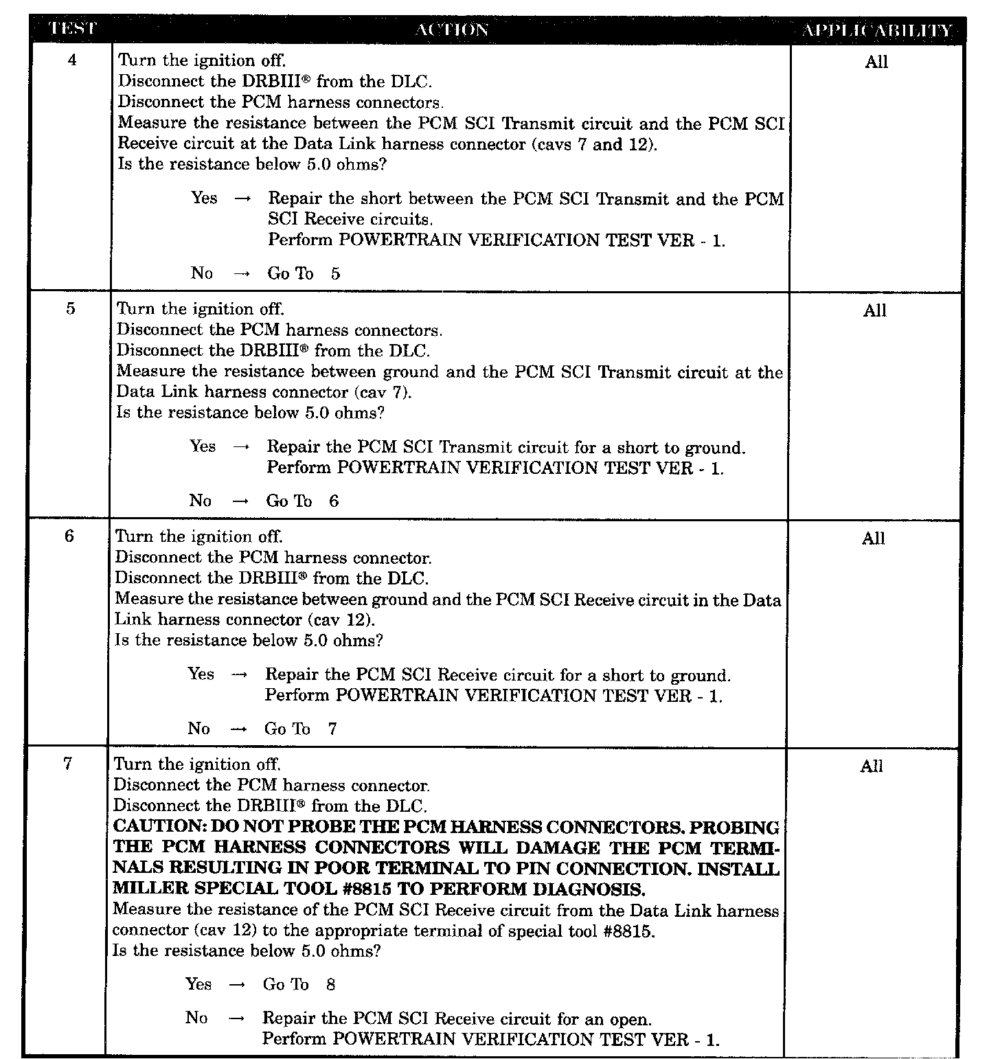 - PCM SCI transmit circuit shorted to ground