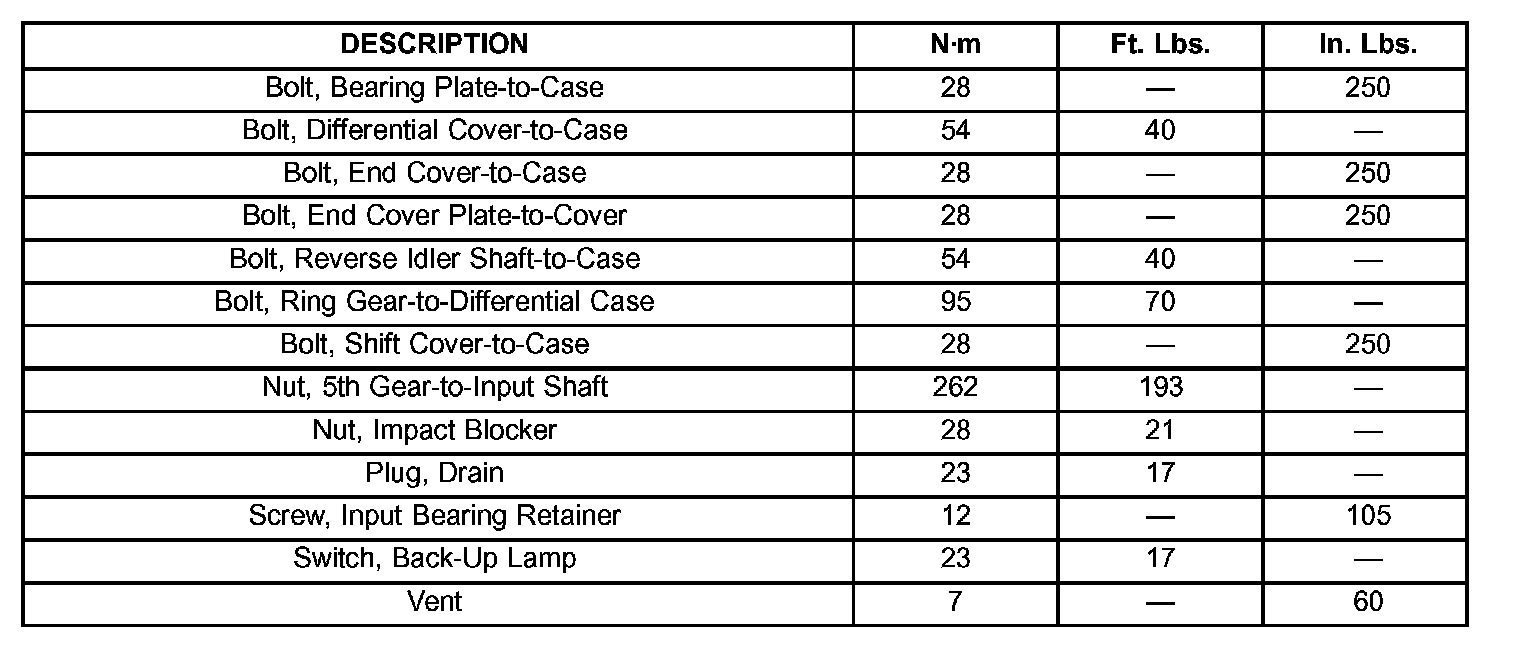 TORQUE SPECIFICATIONS