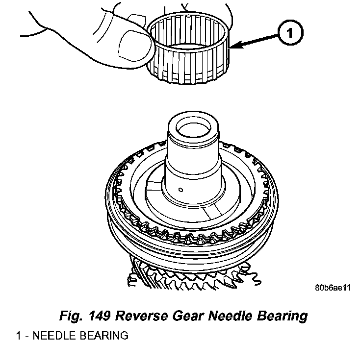 4. Remove reverse gear needle bearing (Fig. 149).