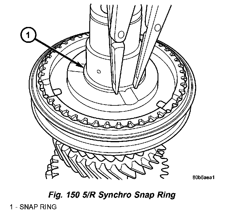 5. Remove 5/R synchro snap ring (Fig. 150).