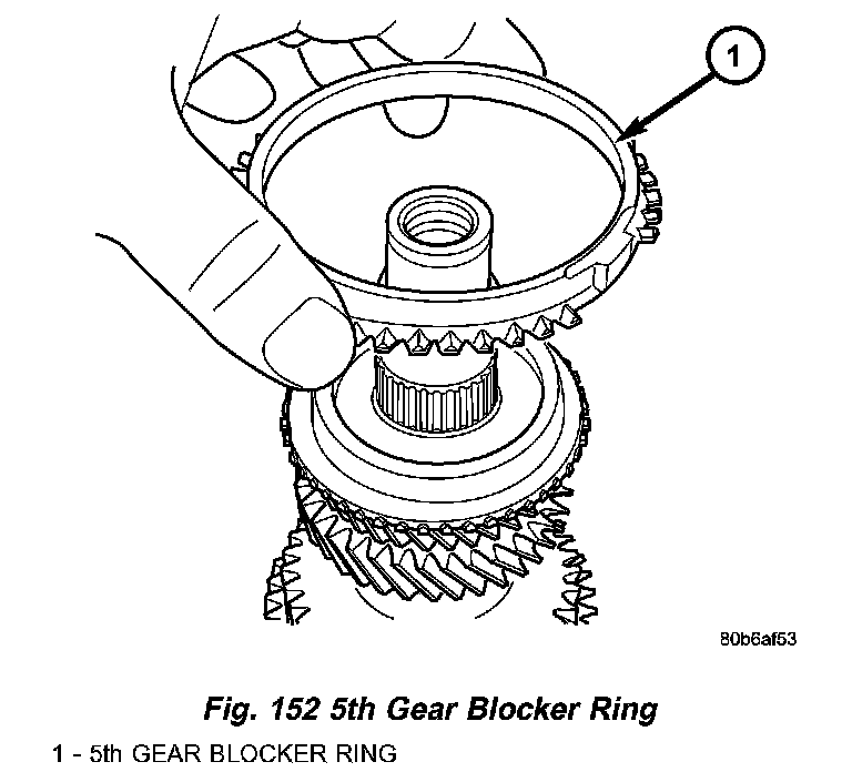 7. Remove 5th gear blocker ring (Fig. 152).