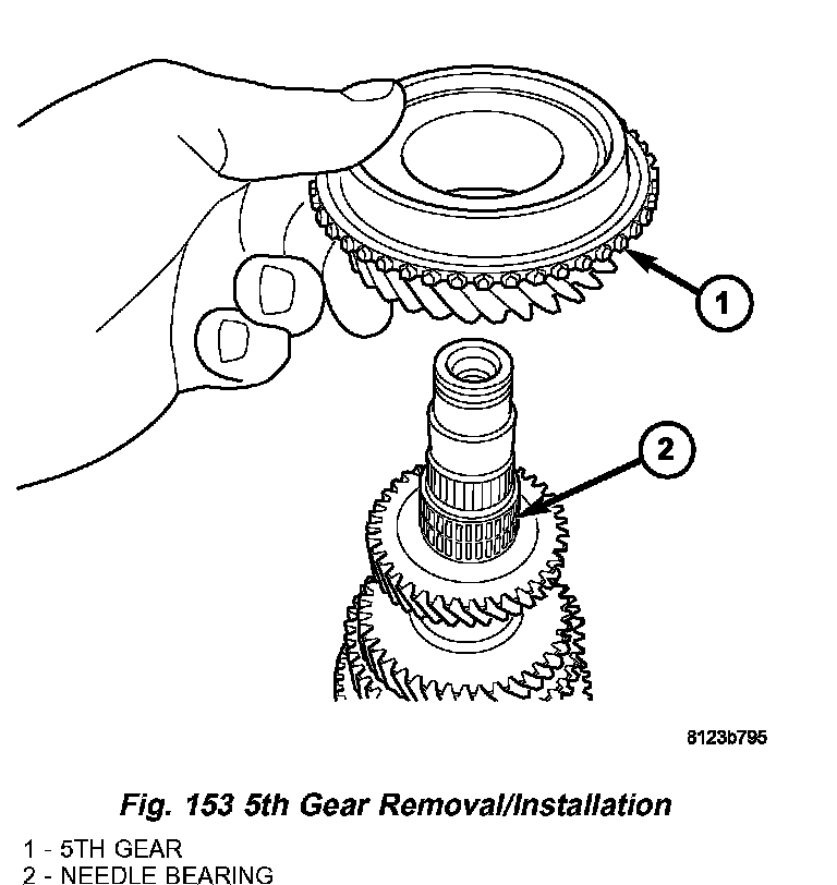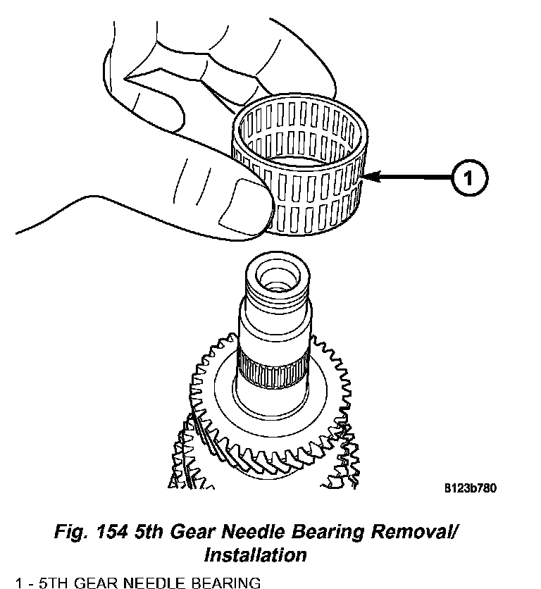 8. Remove 5th gear and needle bearing (Fig. 153) (Fig. 154).