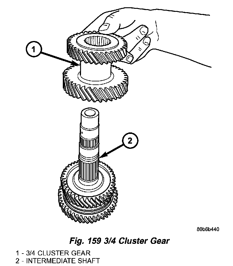 12. Remove intermediate shaft from fixture and remove 3/4 cluster gear from shaft (Fig. 159).