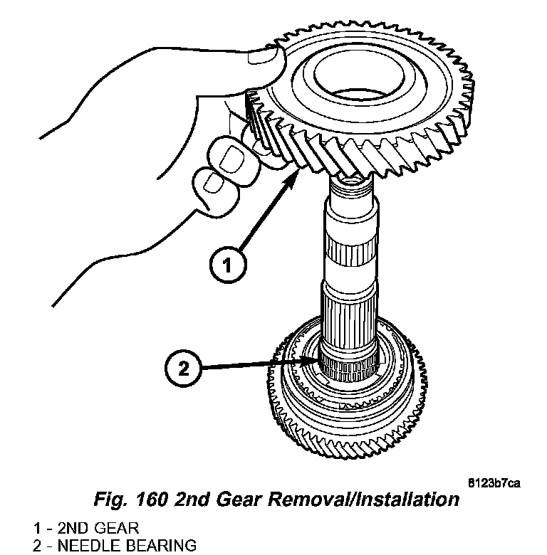 13. Remove 2nd gear and needle bearing (Fig. 160) (Fig. 161).