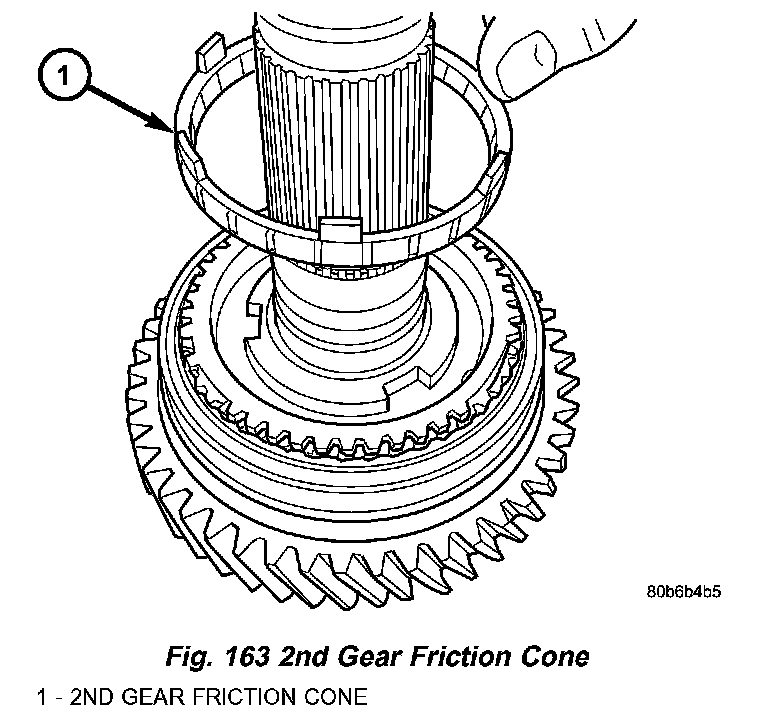 15. Remove 2nd gear friction cone (Fig. 163).
