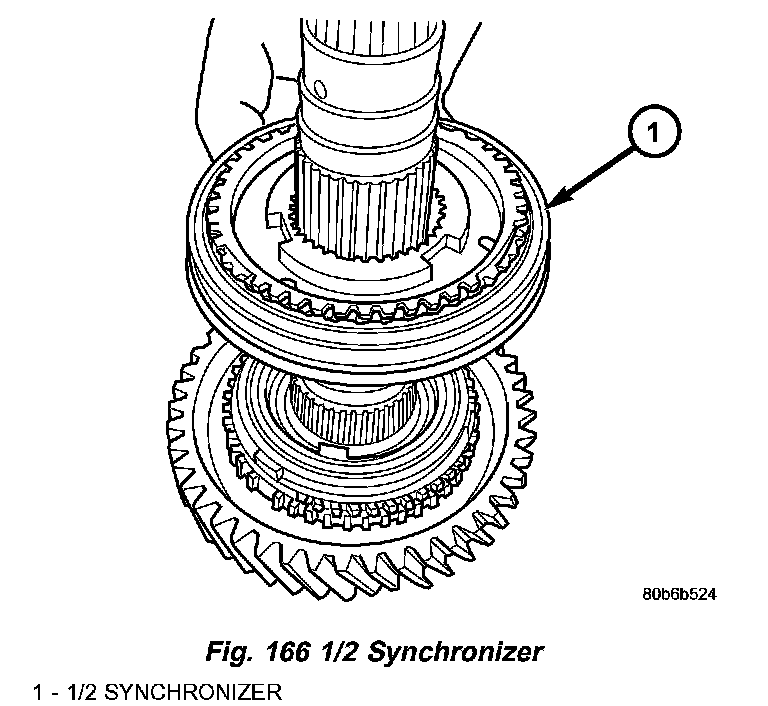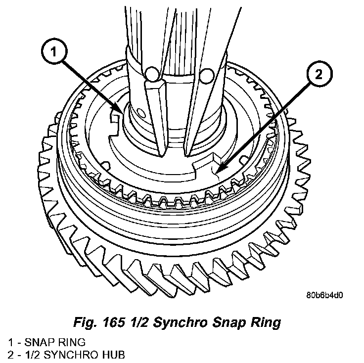 17. Remove 1/2 synchro snap ring (Fig. 165).