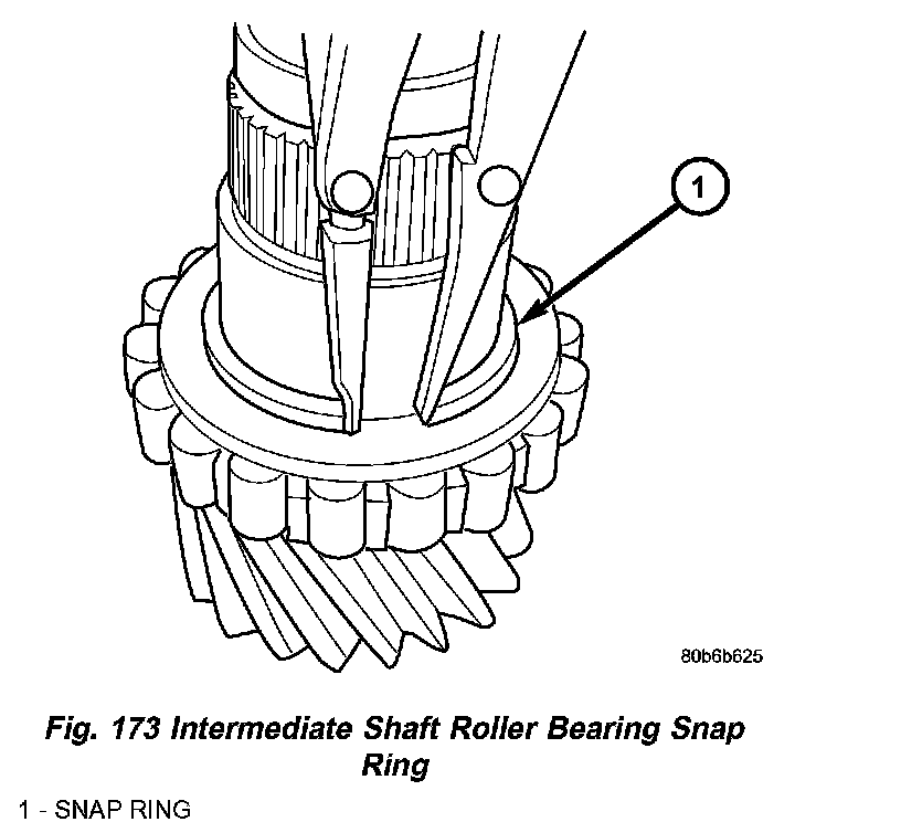 25. Remove intermediate shaft roller bearing snap ring (Fig. 173).