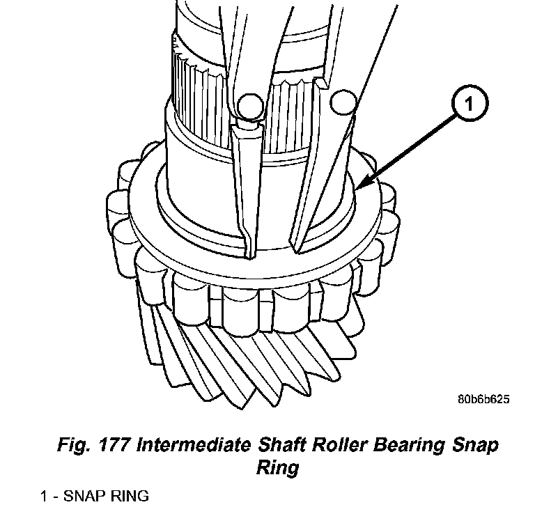 2. Install intermediate shaft roller bearing snap ring (Fig. 177).