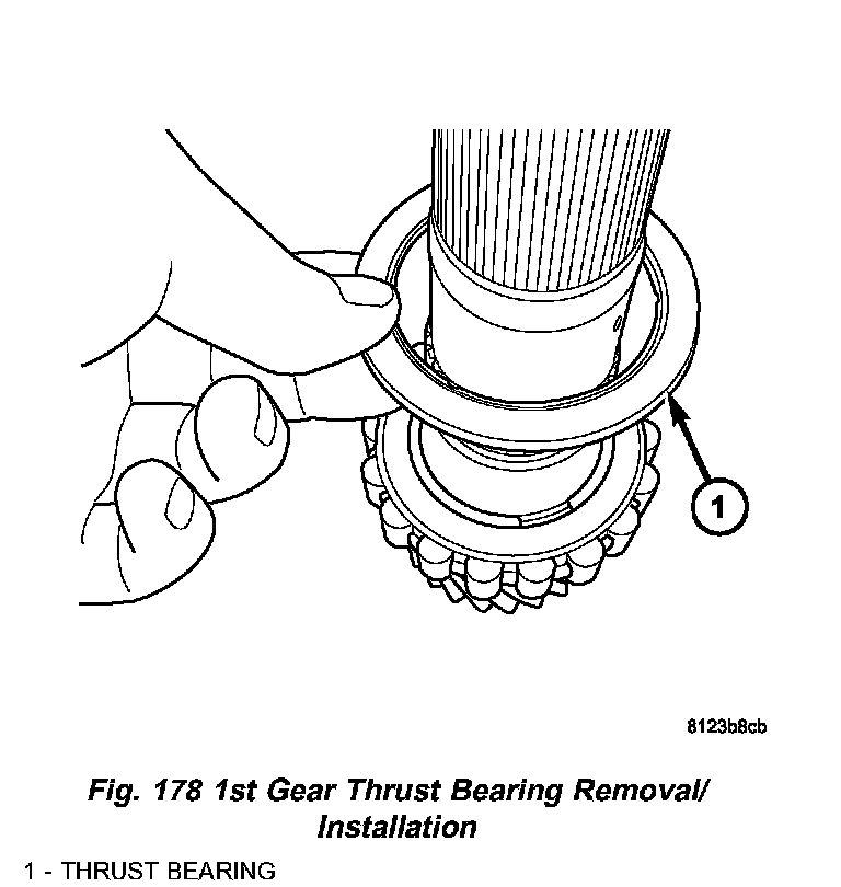 3. Install 1st gear thrust bearing (Fig. 178).