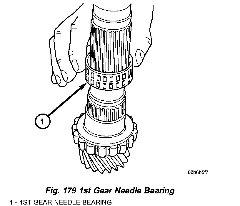 4. Install 1st gear needle bearing to intermediate shaft (Fig. 179).
